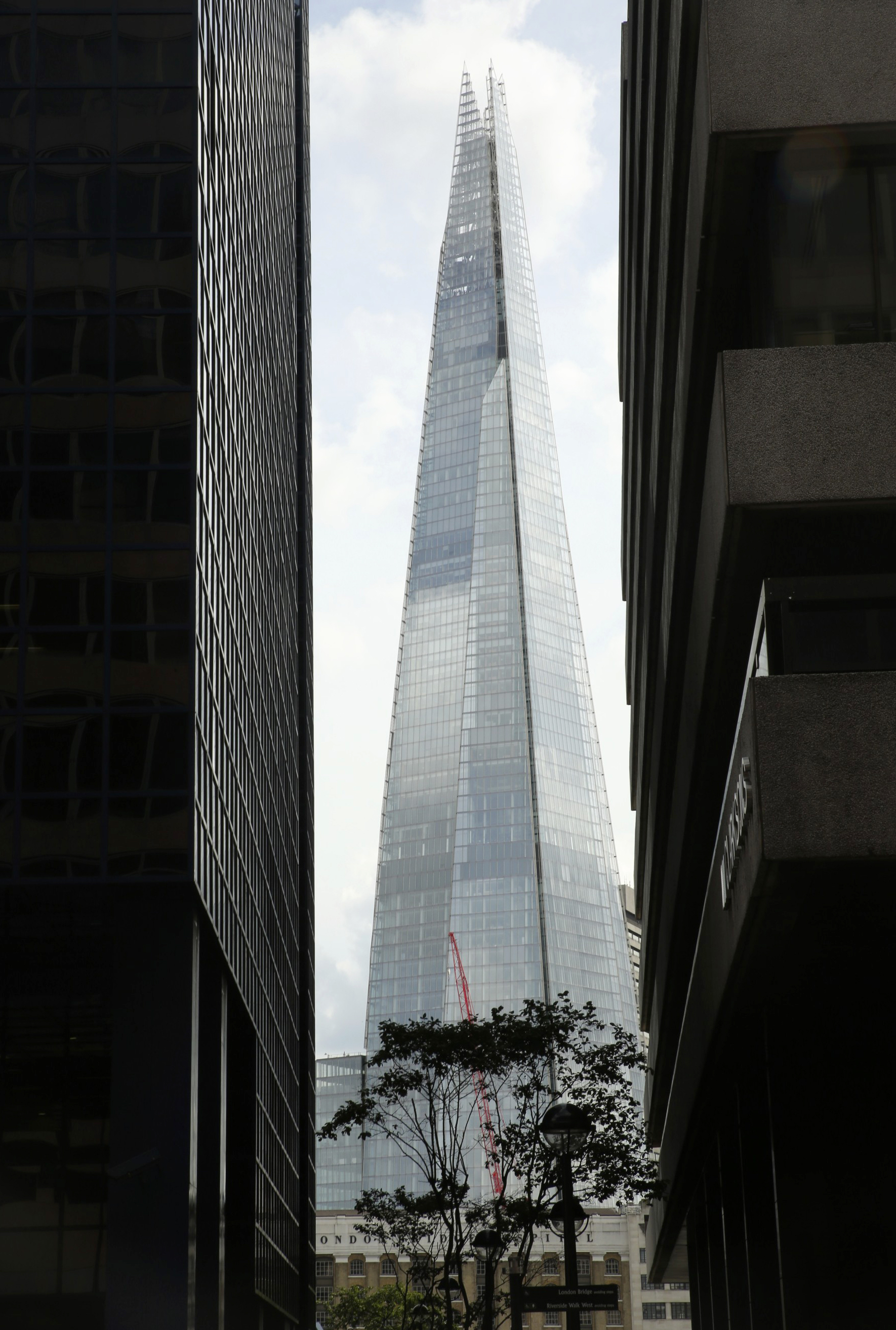 This one is actually called The Shard- it is not a nickname, but it does look like a shard of glass. It is currently the tallest building in London.