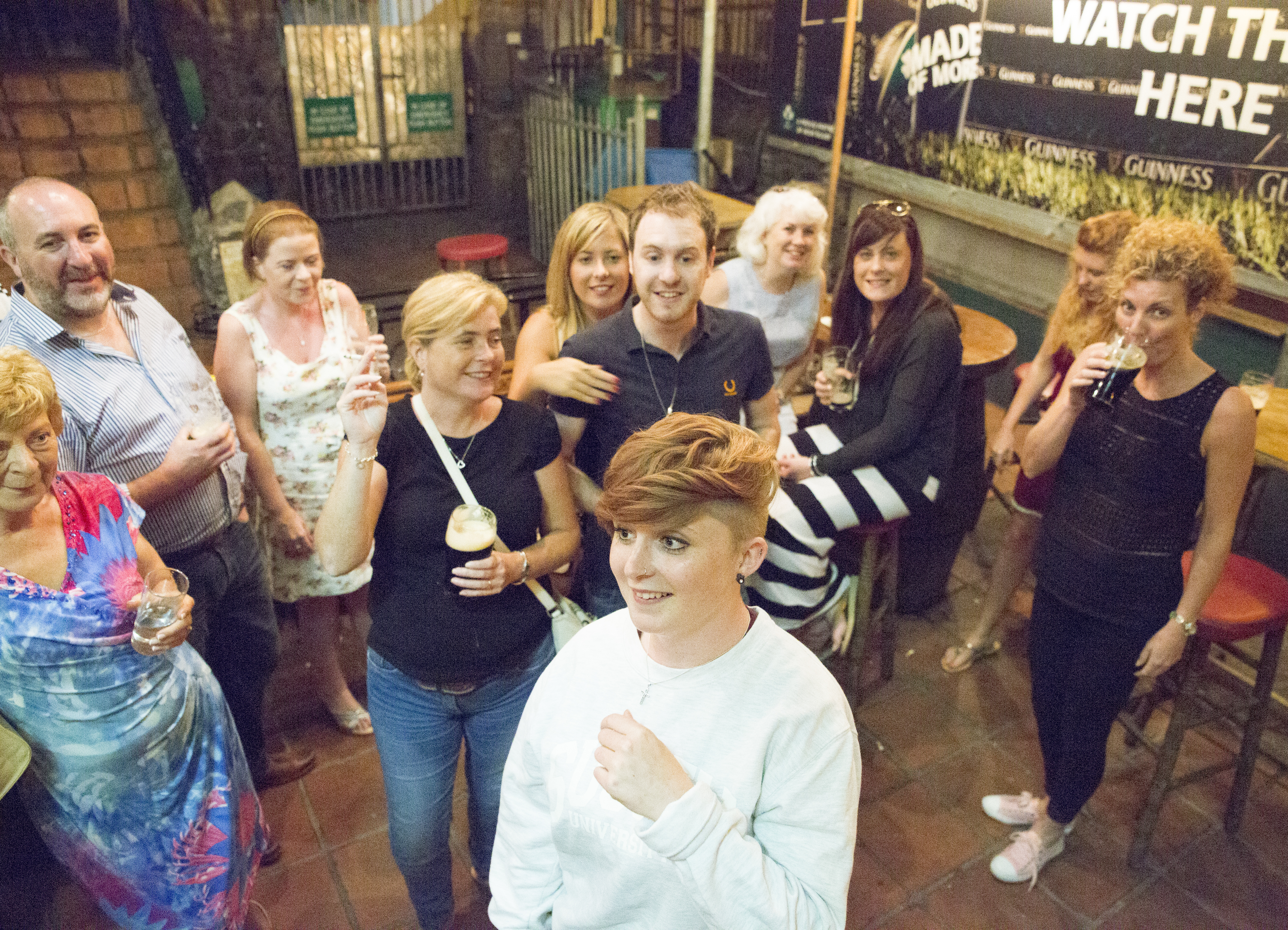 My 3rd cousin Kayleigh, who had been the one to contact me originally, picked us up from the airport with her mother’s partner, Martin. As we rode in to the B&B to drop off our bags, Kayleigh warned us to not expect to be home before 5 am. We had been warned by friends in the UK to “bring our drinking boots.” We walked into a pub to meet the whole gang shortly after checking into our room, we were met with applause, introductions and hugs. Everyone was more than welcoming and excited to meet us. It was really heart warming.