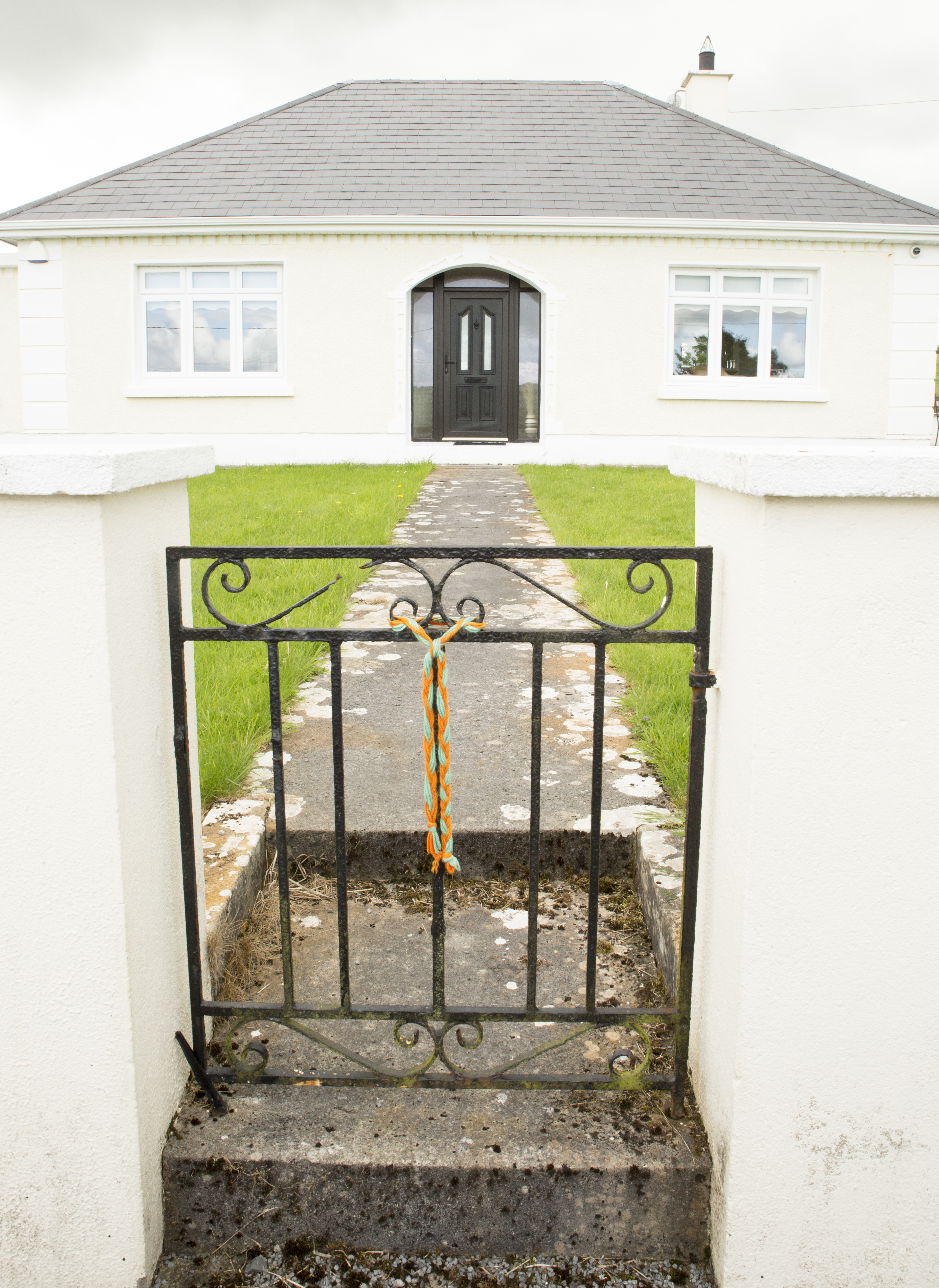 This is the house from the earlier photo of Tom McKlynsky’s gravestone. It is now owned by another family, but it is where Raymond and his siblings spent much of their childhood in the summers. The decorative braid on the gate is, red and green, the colors of County Mayo, Ireland.