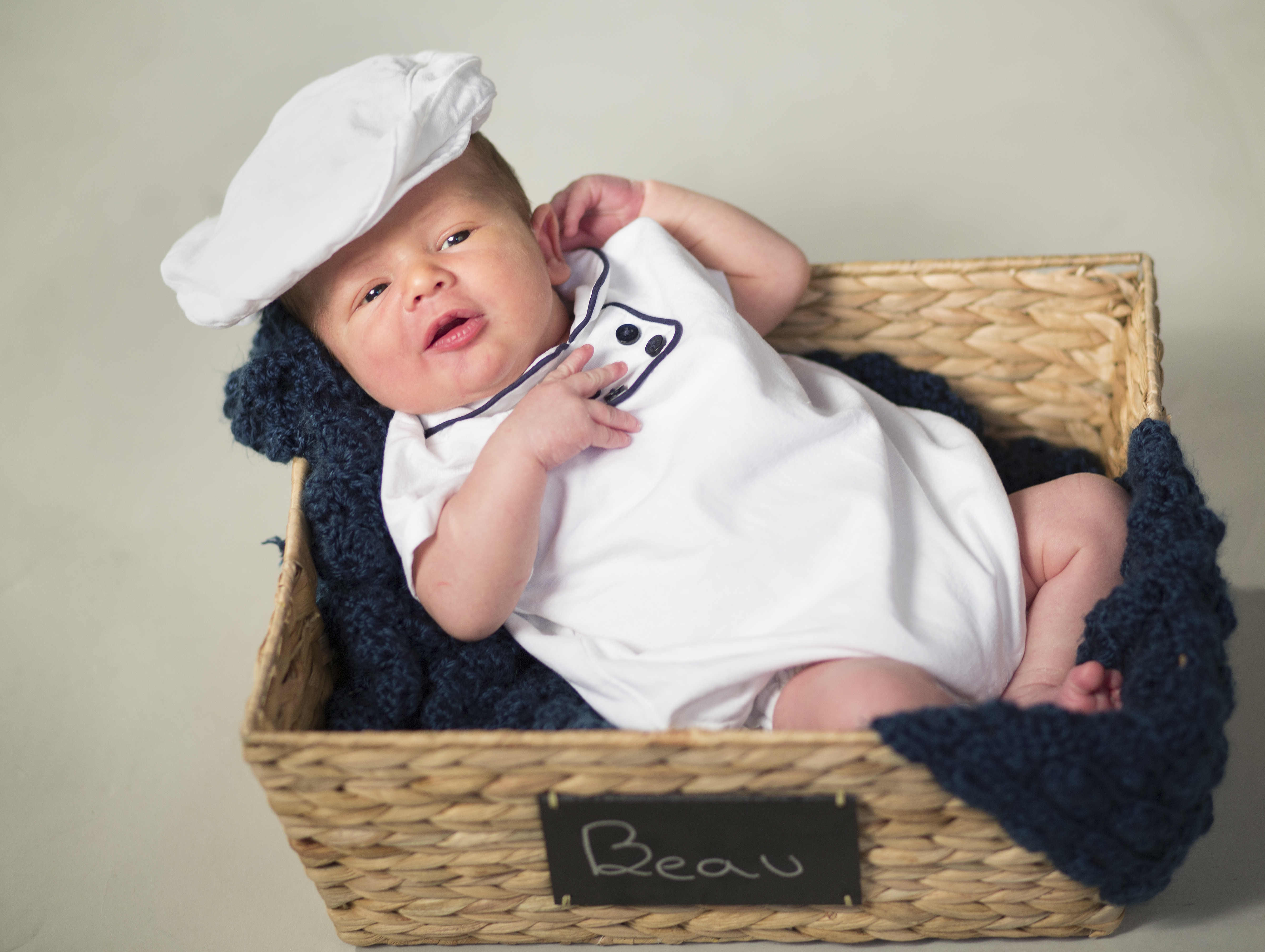 Emily and Brian brought their new son, Beauregard, over to my home studio a mere thirteen days after his birth to capture some early memories. Little Beau was not too into the photo shoot at first… or throughout really.